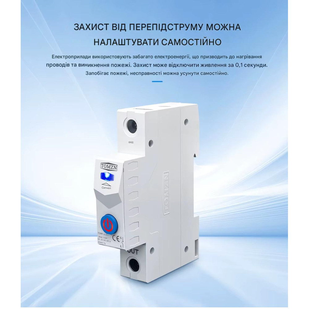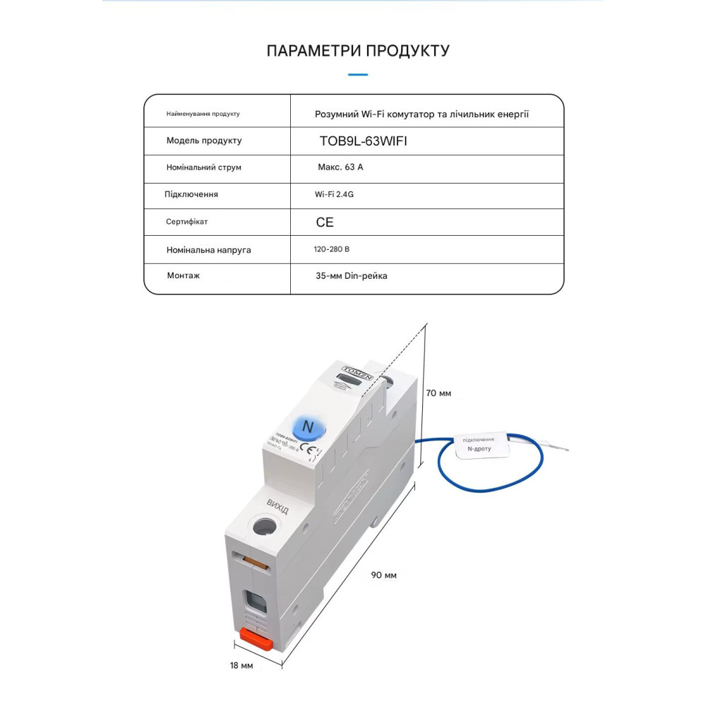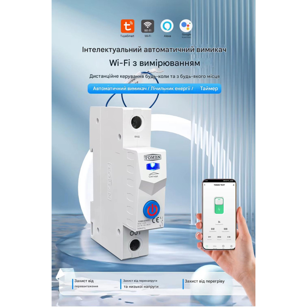 WIFI вимикач-реле з моніторингом напруги і струму на DIN рейку 220В до 63A для Tuya або Smart Life від TOMZN за 565грн (код товару: TOB9-63WIFI )