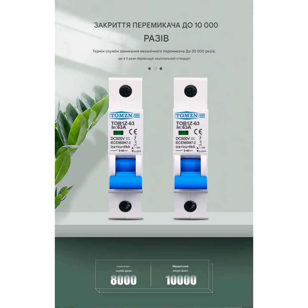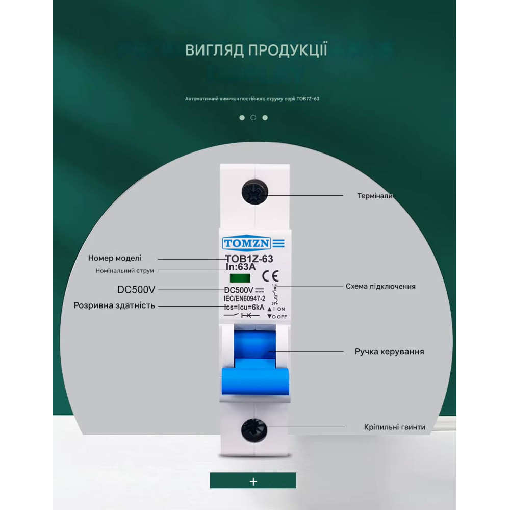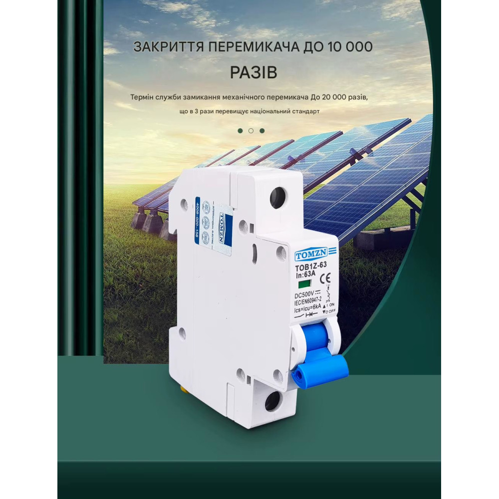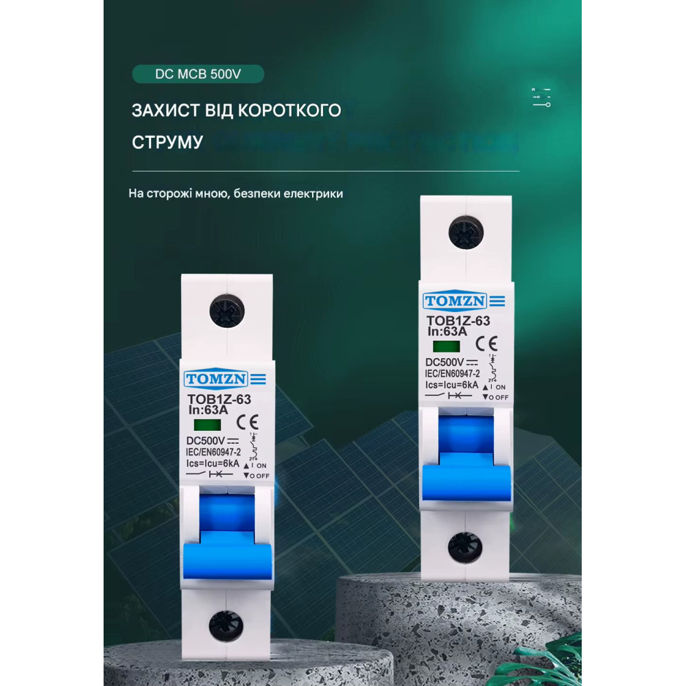 1-полюсний DC модульний автоматичний сонячний міні-вимикач постійного струму 3А 6А 16А 20А 25А до 125 Вольт или 40 50 та 63 Ампери до 500 Вольт від TOMZN за 125грн (код товару: TOB1Z-63-1 )