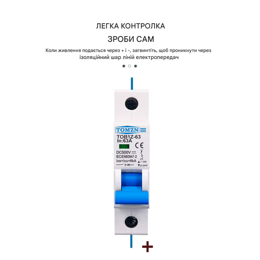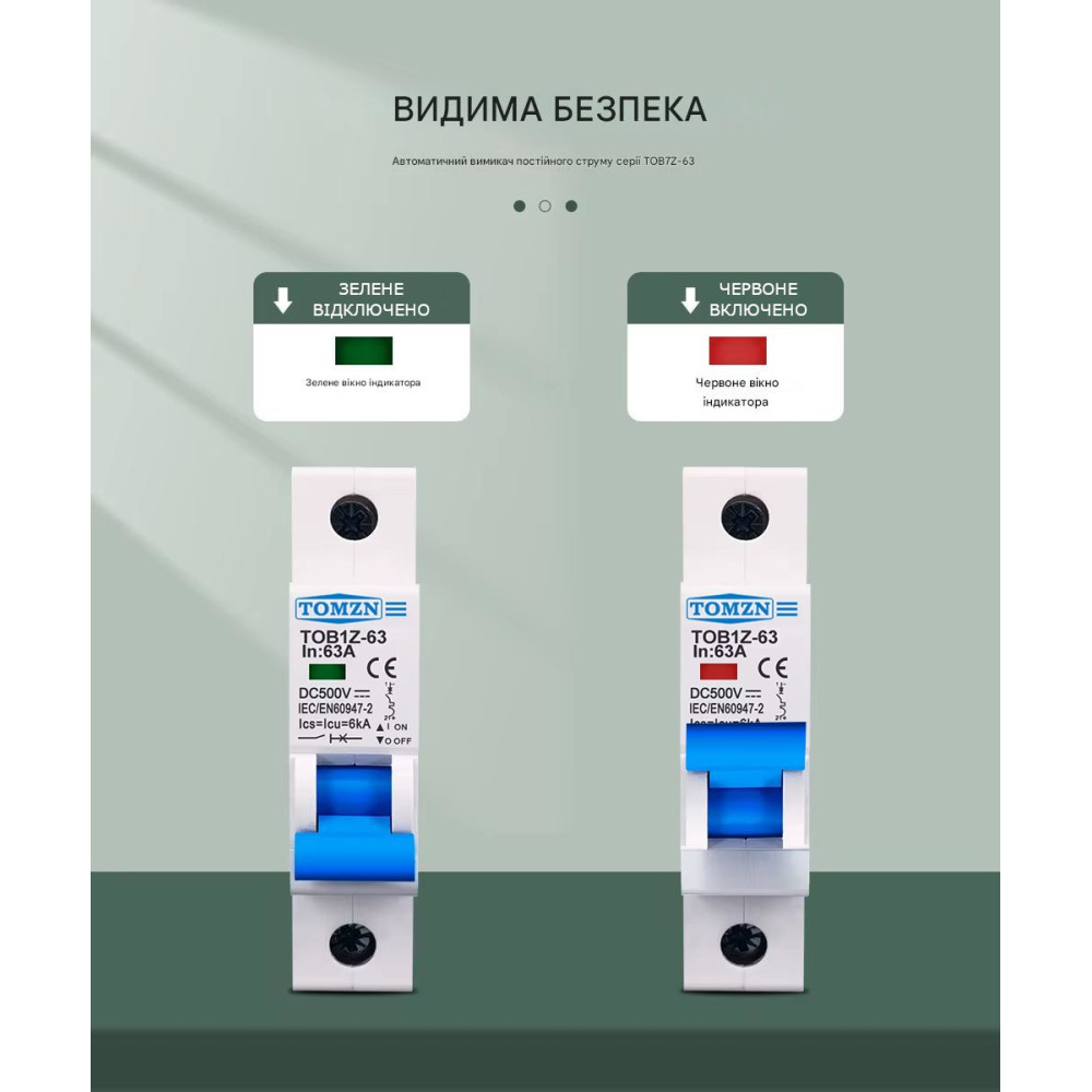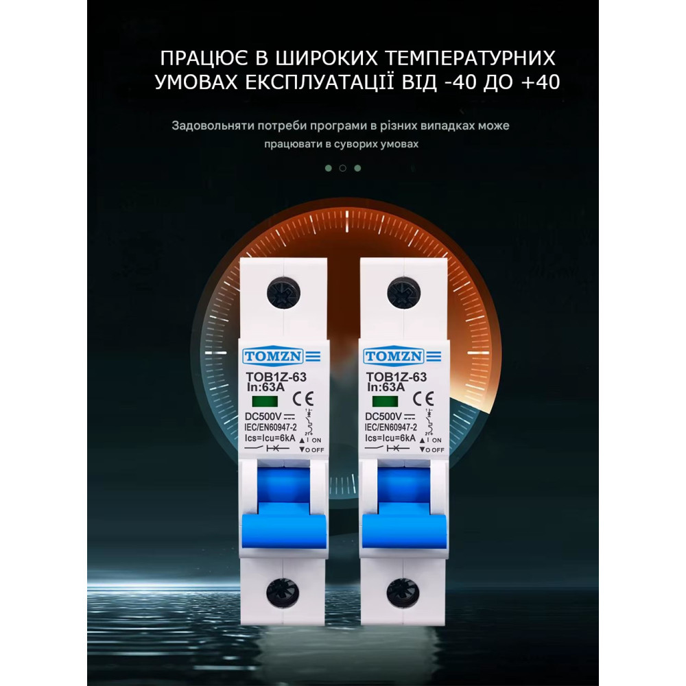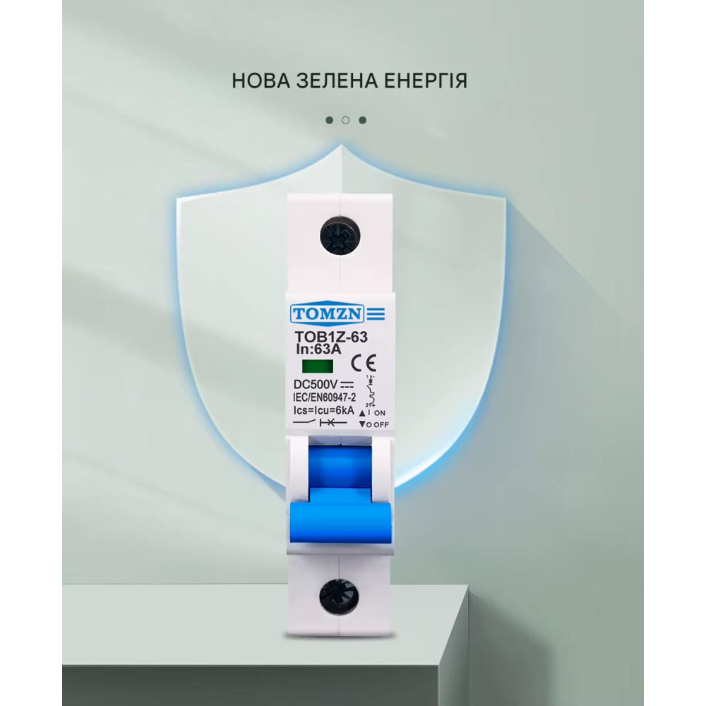 1-полюсний DC модульний автоматичний сонячний міні-вимикач постійного струму 3А 6А 16А 20А 25А до 125 Вольт или 40 50 та 63 Ампери до 500 Вольт від TOMZN за 125грн (код товару: TOB1Z-63-1 )