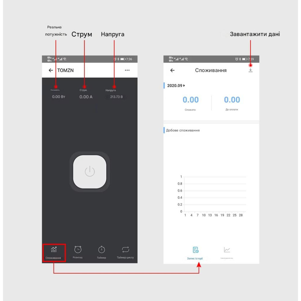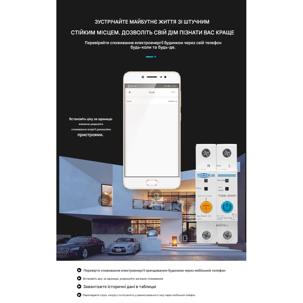 Як тільки потужність / ток / напруга в реальному часі досягає порогових значень, підключені електроприлади будуть автоматично відключені.