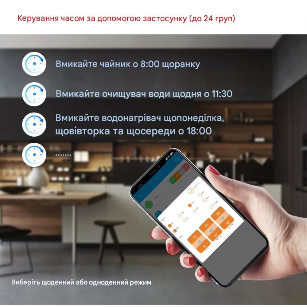 Таймери та розклад: Підтримка до 24 наборів завдань за часом (циклічні, щоденні або одноразові).