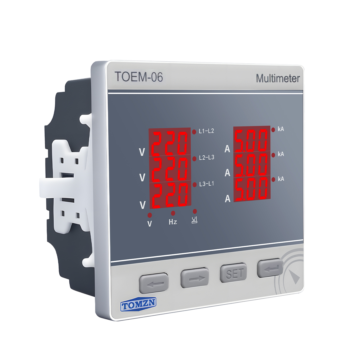 Особливості:Багатофункціональний вимірювач: напруга (V), струм (I) та частота (Hz) для трифазних мер..